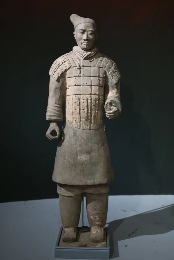 兵馬俑的塑造,基本上以現(xiàn)實生活為基礎(chǔ),手法細膩、明快。每個陶俑的裝束、神態(tài)都不一樣。人物的發(fā)式就有許多種,手勢也各不相同,面部的表情更是各有差異。從他們的裝束、神情和手勢就可以判斷出是官還是兵,是步兵還是騎兵。總體而言,所有的秦俑面容中都流露出秦人獨有的威嚴與從容,具有鮮明的個性和強烈的時代特征。
