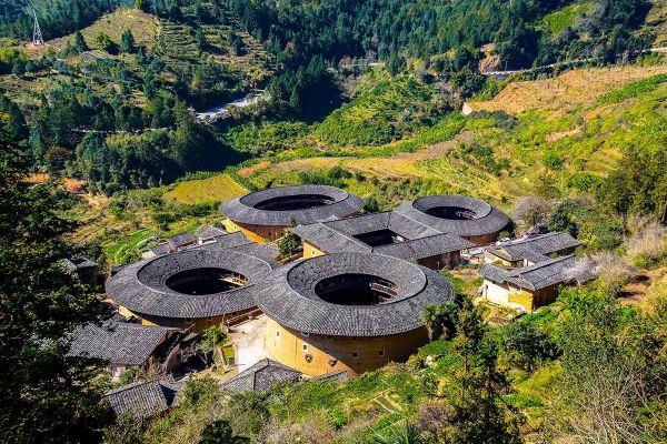 永定客家土樓,位于福建省西南部的龍巖市永定區,中國古建筑的一朵奇葩,永定土樓的設施布局既有蘇州園林的印跡,也有古希臘建筑的特點,是中西合璧的建筑典范。在永定2200多平方公里的土地上,分布著2萬多座土樓,其中有三層以上的大型建筑近5000座,圓樓360多座,其中清代以前的約占1/3,具有代表性的土樓近3000座。