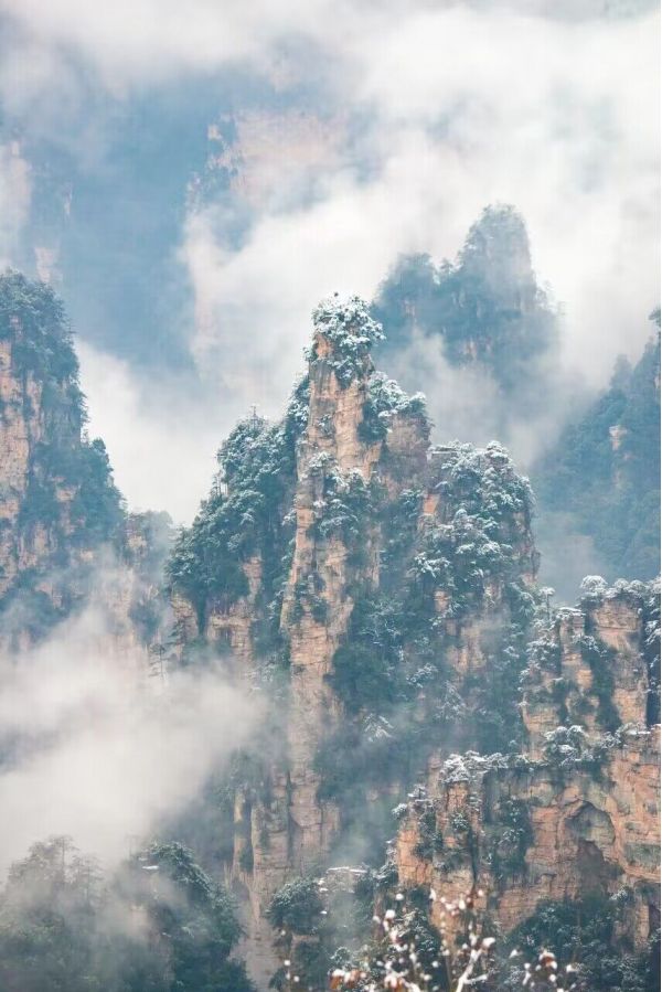 日落,艷陽,云海,飛雪。’你能想象的到的任何的天氣都影響不到張家界的美。