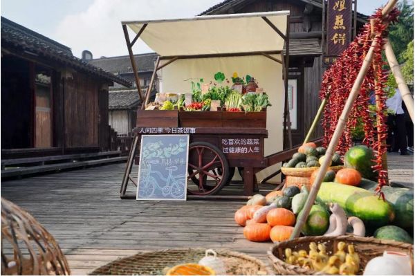 吃完早茶,沿著木棧道走一圈,還能跟鯉魚來個親密的互動;亦或是挑選一些瓜果蔬菜,買回去自己燒來吃。產(chǎn)自烏村的有機(jī)蔬菜,純天然無污染,種的放心,吃的更安心
