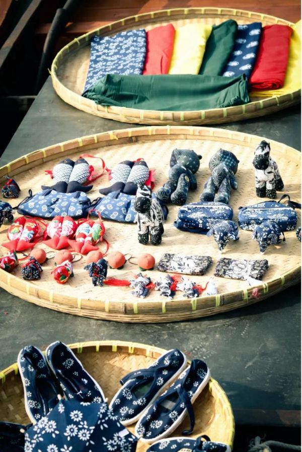 仔細(xì)逛一圈,能看到五花八門的小商品:藍(lán)印花布,布鞋,錦鯉掛墜……挑選一些心儀的小玩意,自己穿戴,或者送給家人、朋友,都是不錯的選擇。