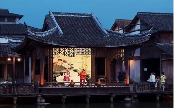 覺得還沒過癮的,都會選擇晚上過來,聽聽?wèi)蚯?,也不乏是一種享受。夜幕降臨,草臺戲拉開了序幕:無論是男女老少,都倚靠著欄桿,隔岸相望。安靜的欣賞著一場場精彩的表演。