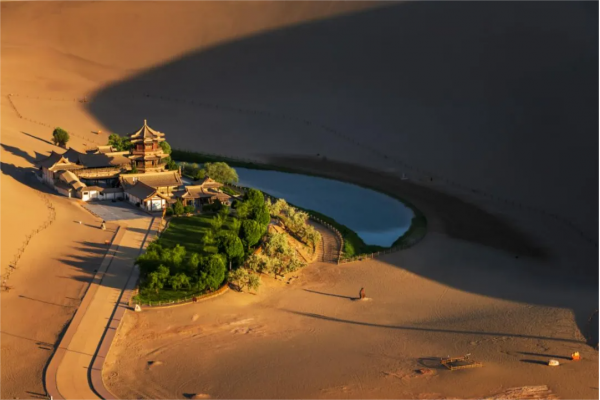 之后我們將前往鳴沙山,【鳴沙山月牙泉】歷來以“沙漠奇觀”著稱于世,是敦煌的名片之一,沙漠與湖泊共生,月牙泉也被稱為沙漠第一泉。大家可以選擇徒步或者騎駱駝上山,從山頂鳥瞰,西域大漠景色讓人心曠神怡,黃沙萬里長,遠處的駝隊,正悠悠而來;在這里靜待日出東山,大家就可以觀賞到一場壯觀的日出盛宴,當那火紅一點一點地從深淵中奮力躍出,直到這輪旭日沖破云層,溫柔卻有力量的晨曦落在鳴沙山起伏的丘陵上,直到染得天地同色,這份似乎要點燃整個西域大漠的壯闊絲毫不遜于“大漠孤煙直,長河落日圓”。