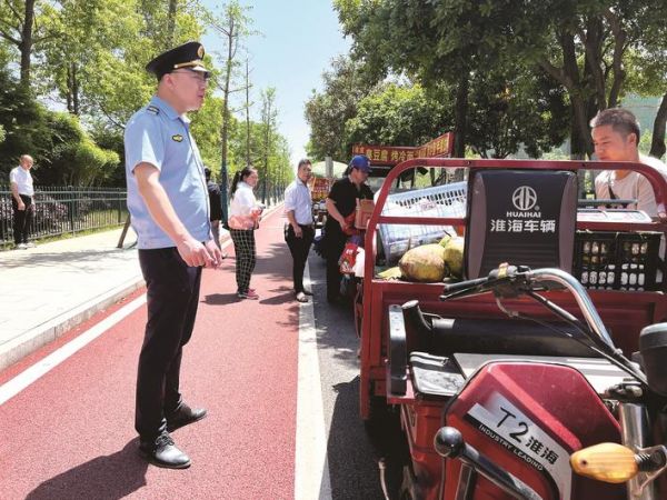 5月1日,長沙縣星沙街道組織星沙行政執法隊隊員在維護轄區內秩序,對松雅湖附近路邊商販進行勸導。