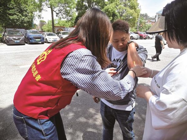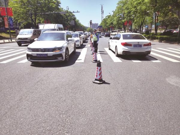 “您好,請路邊安全停靠,戴好頭盔。”“您好,請牽牢您的小朋友,不要站在斑馬線上。” 5月2日,在長沙縣星沙街道開元路和黃興大道交界處,馬達嶺社區的交通勸導志愿者服務隊提醒居民注意交通安全。此交叉路口是3號地鐵螺絲塘站出入口,旁邊有商場,隨著“五一”長假的到來,此處車水馬龍。志愿者們揮動著“文明禮讓”的小旗子,提醒車輛遵守交規,引導行人文明過馬路。