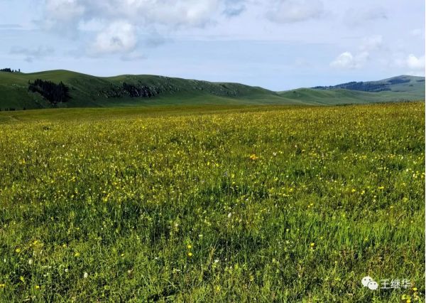 一看手機今天是小暑,這應該是三伏天最熱的時候,可是我們在在這大山里凍得瑟瑟發抖。這個地方叫人體草原,遠處是九曲18灣,整個的山脈像一個個穿著綠色的緊身內衣的人體。你可以想象這是一個多大的人有多少公斤。造物主是多么神奇,這里造個人,哪里再仿造一個。像量子力學糾纏的原理。