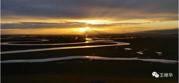乘區間車進入景區,大家直奔最好的景點。雨過天晴霞光萬道,細霧中的遠山露出淡淡的藍色,廣袤無垠的綠地一望無際,沁人心脾的野花鋪天蓋地九曲十八彎的河流蜿蜒曲折,映射出多個太陽。我們一行立即受到感染激動不已,拿出飛機就放飛,迅速升天,不到十分鐘過來幾個保安說這里禁飛,命令我們降落。我們馬上降落。可人家剛剛離開,我們又有人飛起。