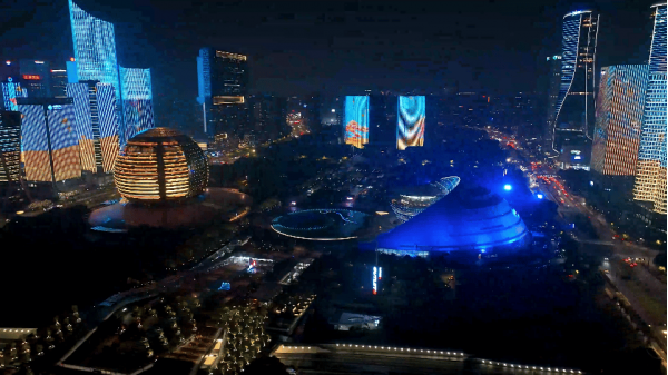 喜迎亞運(yùn)盛會(huì),禮贊勞動(dòng)之美。在錢江新城數(shù)十幢樓宇組成的璀璨畫卷在錢塘江畔恢弘展開,致敬每一個(gè)拼搏奮斗的追夢(mèng)人。此次燈光秀共分為四個(gè)篇章融入了“五一”主題元素、杭州城市形象、亞運(yùn)宣傳符號(hào)等元素。通過聯(lián)動(dòng)播放進(jìn)一步營(yíng)造出全民致敬、喜迎亞運(yùn)的濃厚氛圍。