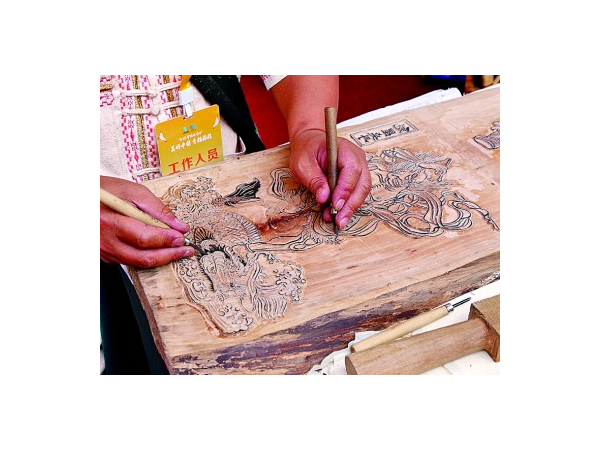 “您在雕刻什么?我能體驗(yàn)一下嗎?”“把印版放平,刷好顏料,再把紙端正地放上去……”騰沖農(nóng)民畫(huà)傳承人賈明安一邊帶游客體驗(yàn)印甲馬,一邊介紹:“甲馬在古代是用來(lái)祈福祭祀的,后來(lái)逐漸成為雕版藝術(shù)。騰沖有悠久的木刻雕版印刷歷史。”他指著一旁未雕刻完的作品說(shuō),“喏,完成這樣一幅作品要五六天。木頭多選用結(jié)構(gòu)細(xì)膩、木質(zhì)良好的梨木,這樣才能雕刻出精細(xì)的圖案。”你一言我一語(yǔ)的對(duì)話(huà)間,游客在賈明安的幫助下既體驗(yàn)到了印甲馬的過(guò)程,又對(duì)騰沖甲馬這項(xiàng)非遺項(xiàng)目有了更多了解。