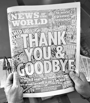 【網(wǎng)宣部】朋友隨聊之旅旅行社從英國歸來,打開行李包沒見啥新奇古怪的玩意兒,倒是有厚厚一沓英文報紙,封面上寫著大字標題“謝謝,再見”,竟然是《世界新聞報》的告別版!眾所周知,《世界新聞報》迫于“竊聽門”事件的壓力,已正式停刊,7月10日出版的報紙是其最后一期。朋友笑道,怎么樣,我夠走運吧,頭一回出國,就碰上了收藏“終刊號”的好機會。