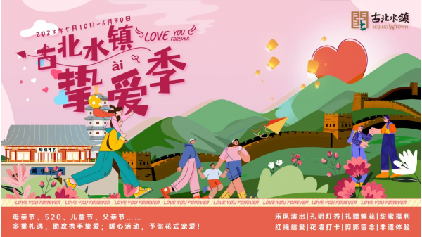 據介紹,本次活動將持續至6月30日。其間,古北水鎮將圍繞每個節日分別推出專屬打卡點。母親節及520情人節期間,景區工作人員將在不同時間段,為在打卡點合照留影的游客準備鮮花作為“愛的紀念”。520情人節期間,日月島廣場將推出大型情歌樂隊現場演出。兒童節當天,14周歲以下的小朋友均可免票進入古北水鎮童玩館。