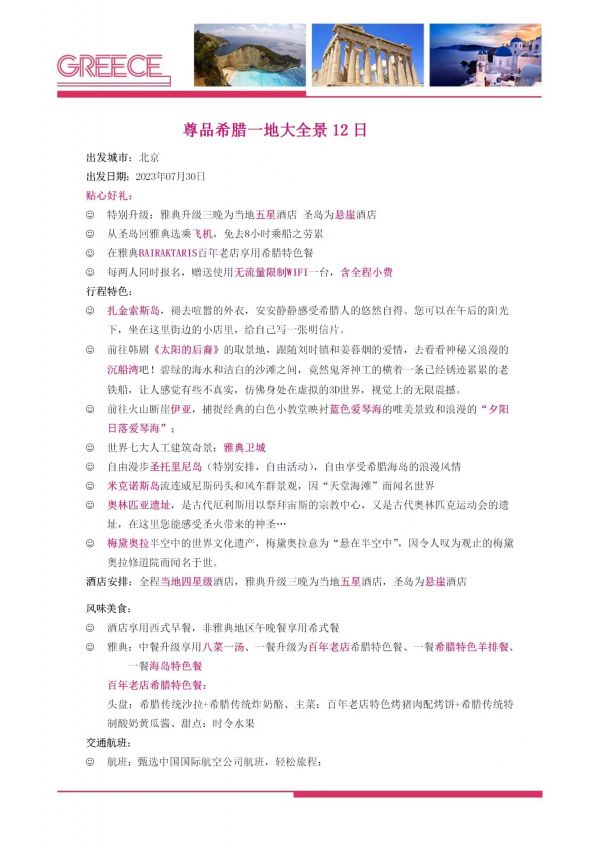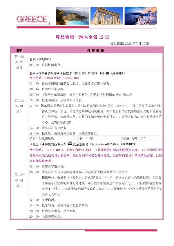 希臘一地大全景12日游