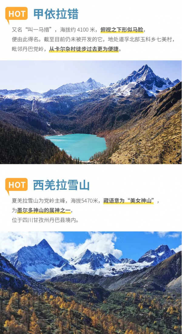 早餐之后乘車前往卡爾雜村,收拾當天所需的裝備開始向甲依拉措進發,從村內乘車約30分鐘抵達徒步起點,徒步約2-3小時到達甲依拉措湖旁,此湖一年迎接的客人不足200人,并且湖水。常年呈現乳白色,當地又稱“牛奶海”。從這里仰望黨嶺。三神山又是另一種風景,下午時分我們開始沿河谷下撤回到公路旁,乘車返回甲居藏寨。