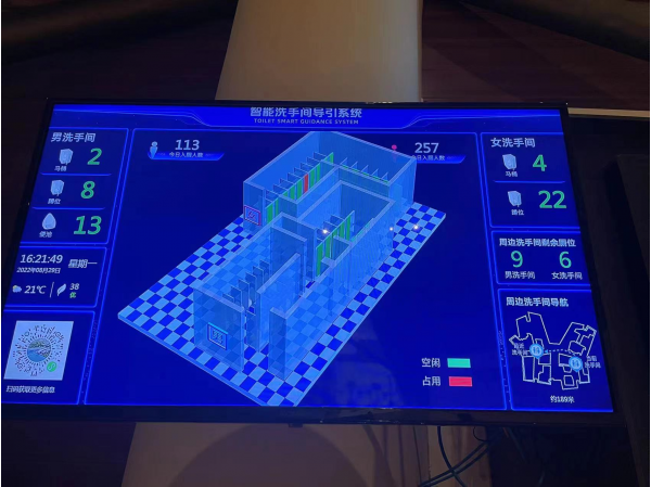 國家海洋博物館智慧化廁所智能顯示屏,可以讓觀眾實時了解廁所使用情況。