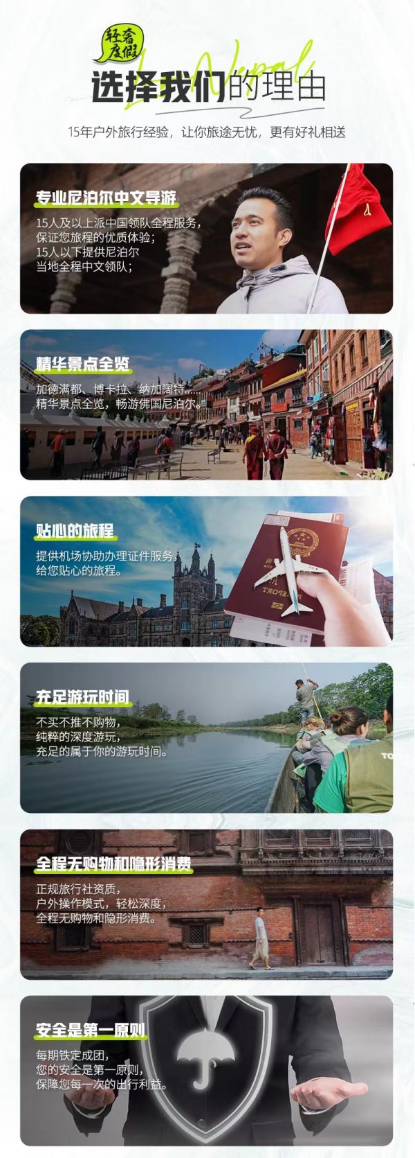 4.導游服務:15人及以上派中國領隊全程服務,保證您旅程的優質體驗;15人以下提供尼泊爾當地全程中文領隊(成都機場有送機人員協助辦理登機牌、出發手續)。