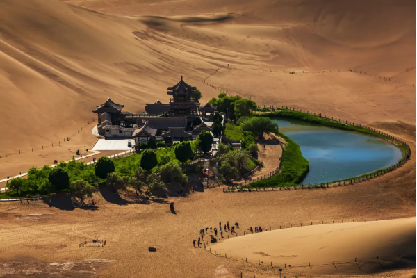 下午我們抵達敦煌游覽勝地【鳴沙山月牙泉】,千百年來,鳴沙山和月牙泉猶如伴侶一般令人震撼,泉在流沙中,干旱不枯竭,風吹沙不落,頗為奇觀。大家可以盡情地游玩,賞泉、爬山、滑沙、騎駱駝……領略大漠風情,感受塞外風光。