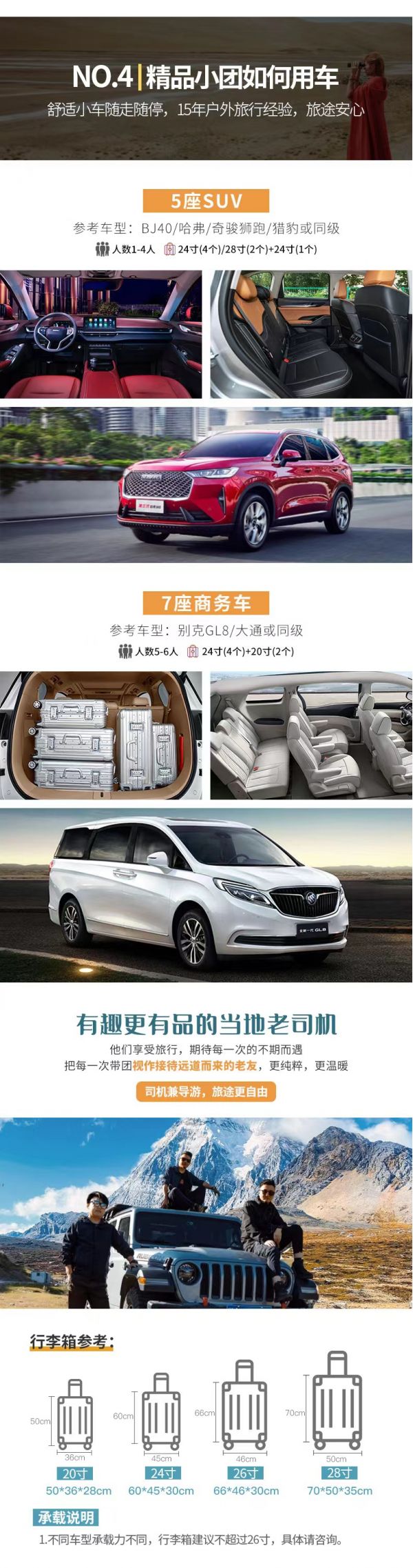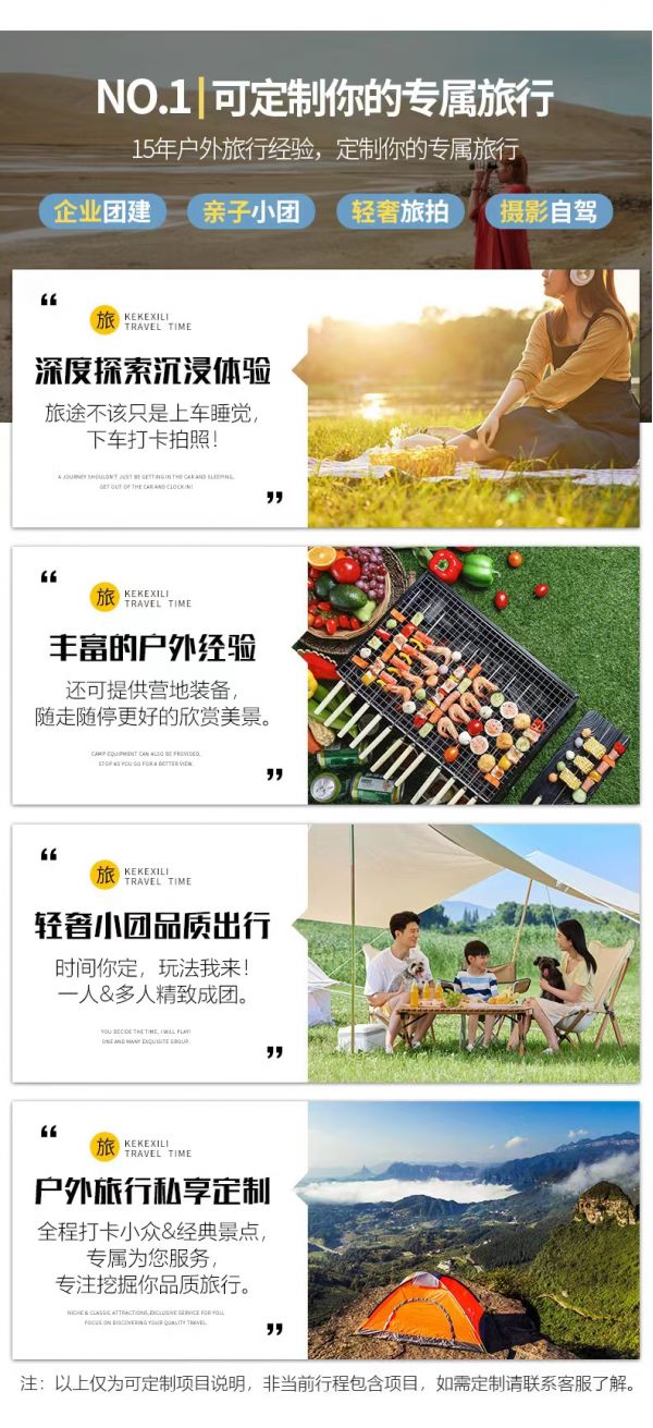 4、如途中遇不可抗因素(如修路、塌方、車輛事故阻礙等)或時間天氣變化我方有權(quán)根據(jù)情況調(diào)整行程線路走向,此舉均是根據(jù)帶隊經(jīng)驗為大家更順利的游玩而做出的改變,希望大家理解和支持,但如造成額外費用由客人自理,望您諒解;若對行程造成影響的,我方將全力協(xié)助游客進行解決,但不承擔(dān)由此造成的損失,若因此而增加的費用,敬請游客自理。