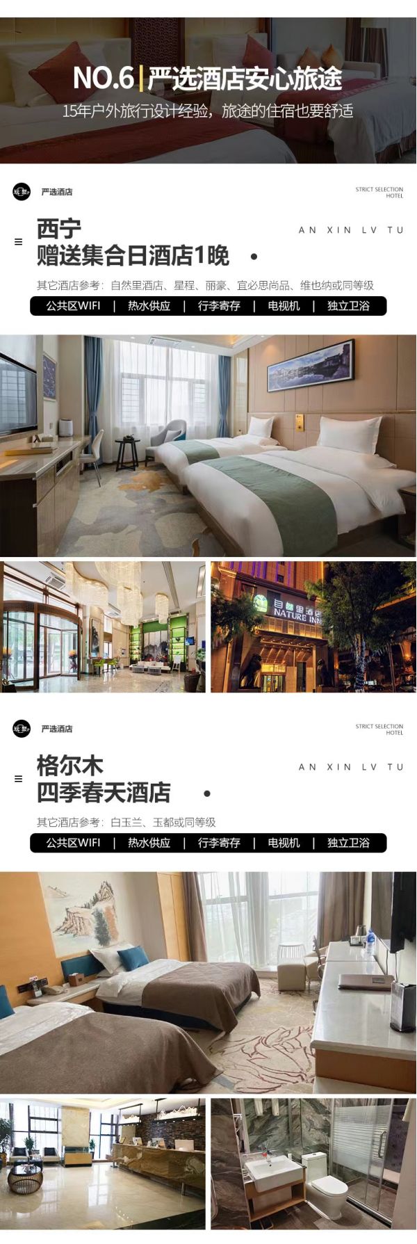 5、該線路為特種線路,當(dāng)?shù)鼐频昙安惋嫍l件無法與城市相比,請游客做好心理準備;賓館內(nèi)無牙膏牙刷、拖鞋等一次性衛(wèi)生用品,請自備個人衛(wèi)生用品;沿途商店較少,民俗習(xí)慣亦有不同,游客可自備咸菜、小吃、干糧等零食,以備不時之需。