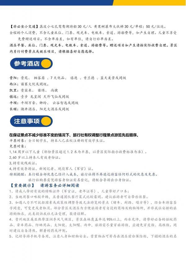 貴州6日游 聊城發團 純玩 無購物 貴陽 黃果樹 小七孔 鎮遠古鎮 梵凈山 西江 非遺博物館 下司古鎮 發團日期 20230619-20230624 價格 3680 報名電話 0635 8681234