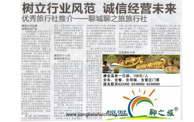 山東商報報道聊城優秀旅行社——聊之旅國際旅行社