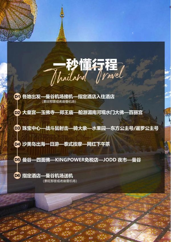 泰國6日游 聊城發團 純玩 無購物 曼谷 芭提雅 沙美島 ...... 發團時間 20230703-20230708 20230710-20230715 價格 4280 4580 報名電話 0635 8681234