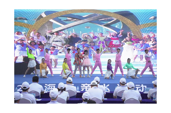開幕式上,主題鮮明的開場歌舞《親水正青春》歡快上演,歌手和舞蹈演員通過多形式的表演盡情展現親水運動的活力和青春,帶領觀眾領悟親水運動的新魅力。在舞臺的周邊,還設置了沿海徒步互動區、親水運動表演區、知名運動品牌購物展示體區等主題區域,營造親水運動體育+旅游的氛圍,進一步凸顯親水主題,多方位打造沉浸式的體驗感。帆板世界冠軍陳佩娜、滑水世界冠軍陳莉莉、蹼泳世界冠軍舒程靜通過視頻方式為本屆親水運動季送上祝福,為海南親水運動加油助陣,進一步點燃了現場觀眾的熱情。