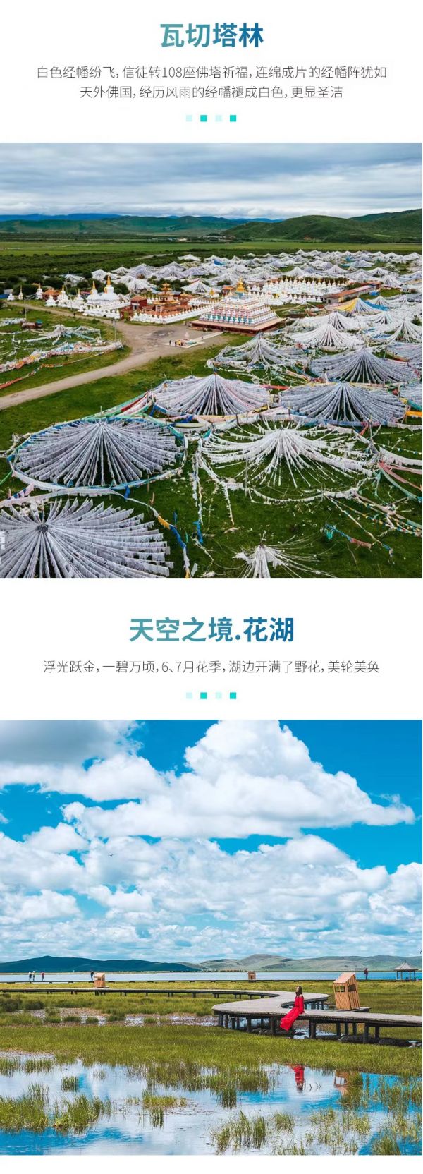 隨后經(jīng)過(guò)瓦切塔林,瓦切塔林是為了紀(jì)念第十世班禪大師頌經(jīng)祈福之地,成排的白塔、連綿的經(jīng)幡,蔚為壯觀,以此為背景用相機(jī)記錄下自己虔誠(chéng)朝拜的樣子吧。