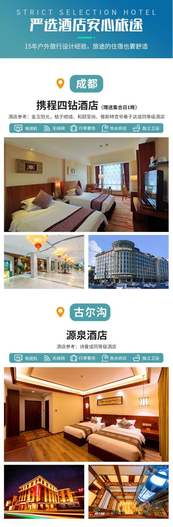 (2)如當(dāng)天實(shí)際情況不允許,則會(huì)調(diào)整入住于畢棚溝溫泉酒店,望您諒解。