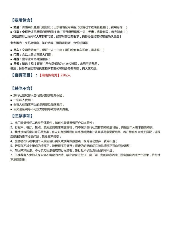 廈門雙飛5日游