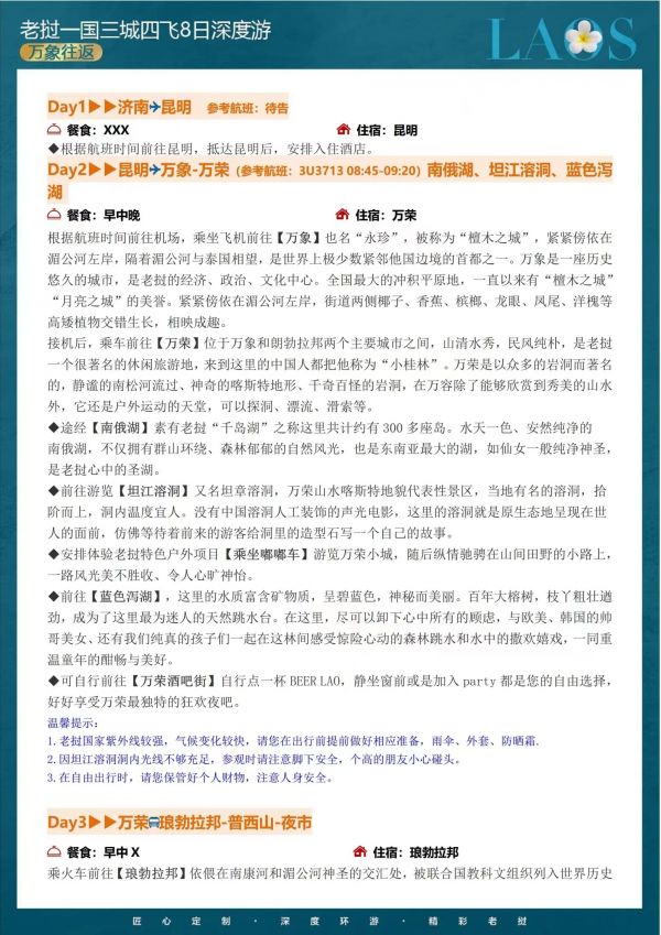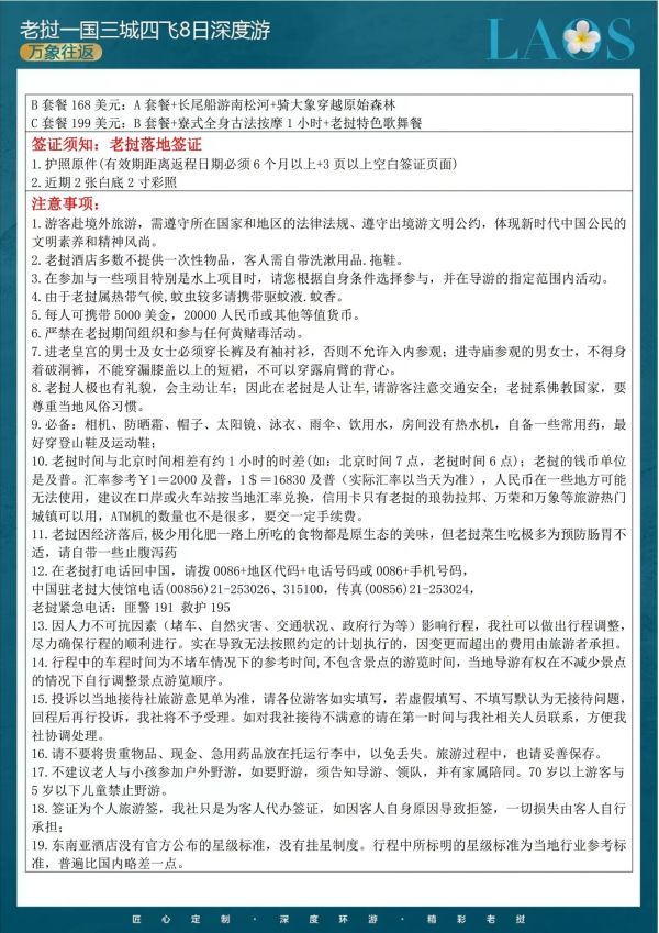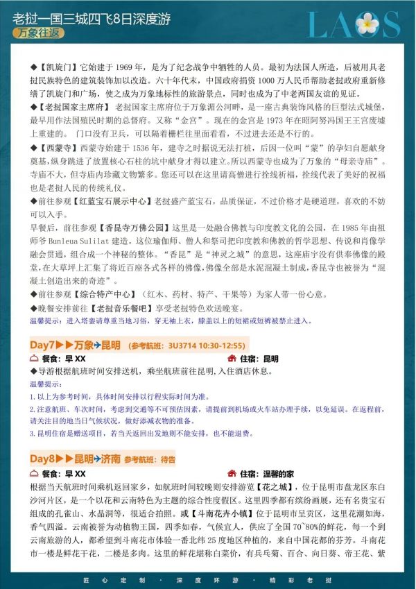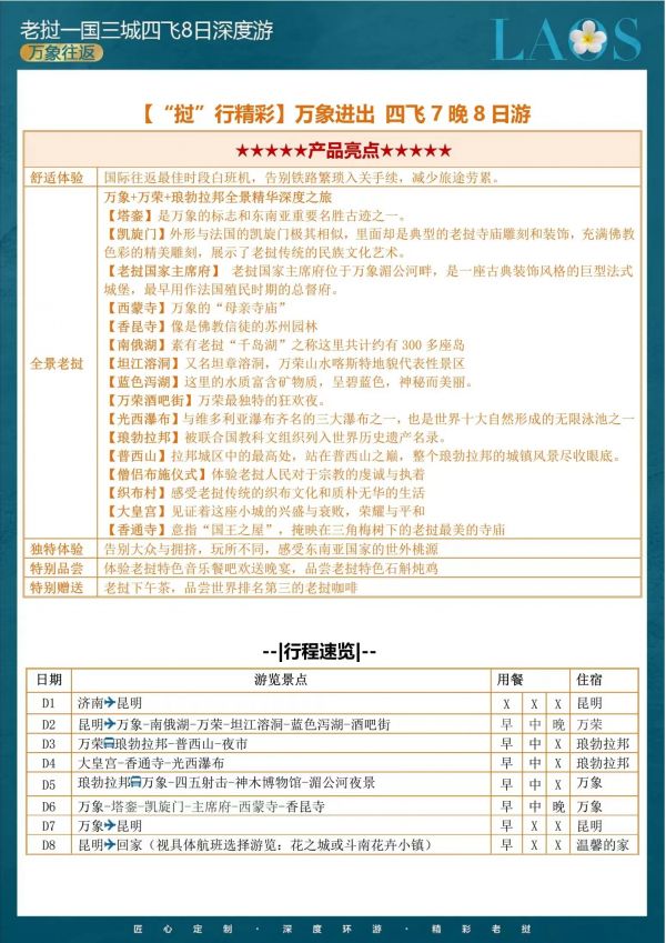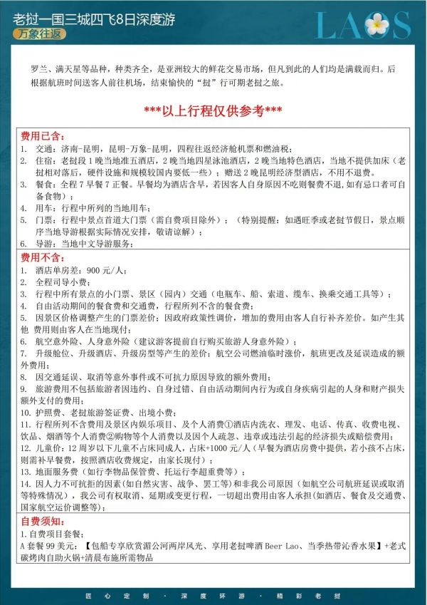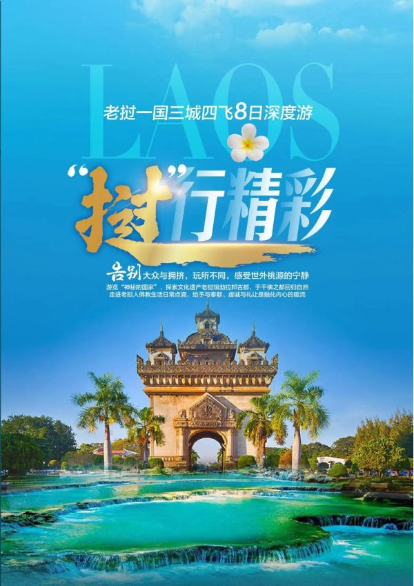 老撾四飛8日游 聊城發(fā)團(tuán) 純玩 無購物 大皇宮 光西瀑布 坦江溶洞 藍(lán)色瀉湖 凱旋門 價(jià)格 4380 4680 報(bào)名電話 0635 8681234