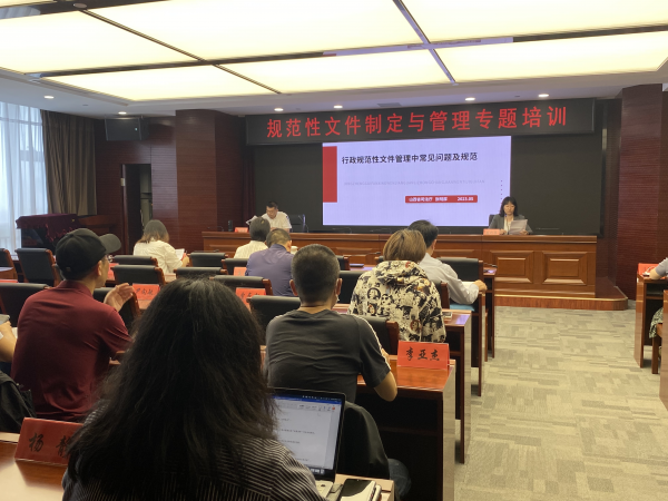 張明厚處長培訓圍繞規范性文件制定和審查各環節中常見問題進行了深入講解,結合具體案例進行分析,加深了大家對規范性文件的認識,對工作中容易出現的問題做了進一步強調。