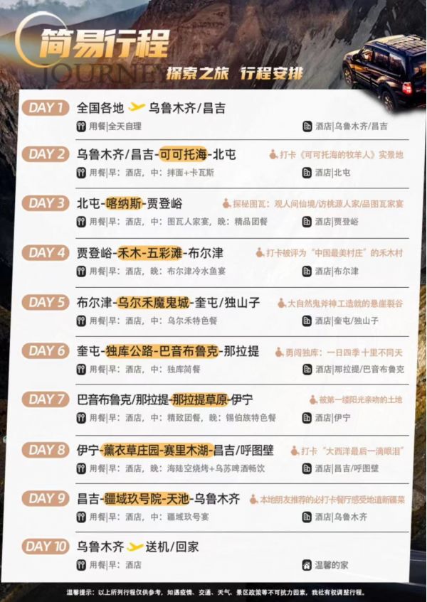 5.贈送:天池區間車、喀納斯區間車、禾木區間車、可可托海區間車、魔鬼城區間車、那拉提區間車、巴音布魯克區間車。