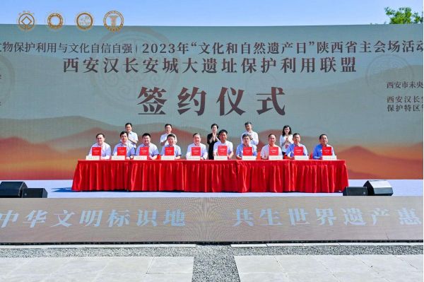 為深入探索漢長(zhǎng)安城遺址保護(hù)利用新路徑,漢長(zhǎng)安城特區(qū)管委會(huì)與陜西省高等院校、科研院所攜手成立“大遺址保護(hù)利用聯(lián)盟”,并在現(xiàn)場(chǎng)舉辦了簽約儀式,旨在圍繞文化傳承、科學(xué)研究、人才培養(yǎng)、社會(huì)服務(wù)等建立長(zhǎng)期、深入的戰(zhàn)略合作關(guān)系。活動(dòng)現(xiàn)場(chǎng),還舉辦了第三屆“最美陜西文物安全守護(hù)人”表彰儀式、“陜西省考古地質(zhì)研究中心”授牌儀式,公布了沿黃文化主題游徑、中共中央轉(zhuǎn)戰(zhàn)陜北主題游徑和大漢文化主題游徑等陜西省首批文物主題游徑。