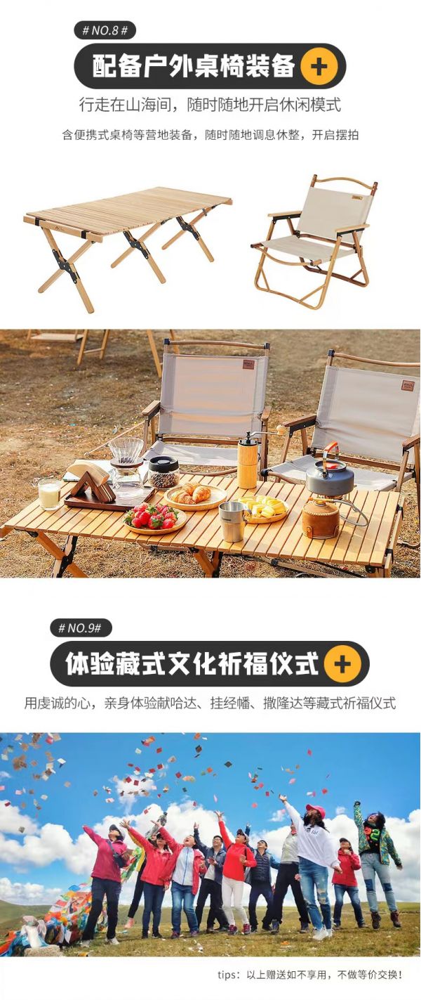 3、沿途景區景點、餐廳、廁所、加水點、高原緩沖區內設有小賣部、超市、旅游紀念品、手工藝土特產等販賣攤點,非我方安排,請游客根據自身需求及興趣選擇消費,并保留好購物小票以便后續維權;購物時請保管好隨身攜帶的物品,不到人多、擁擠的地方購物,不當眾清點錢包里的鈔票,也不隨商品推銷人員到偏僻地方購物或取物。