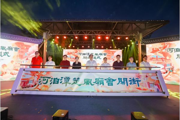 開街儀式以“楚風+晚會”的模式進行,儀式之后,廟會3個小舞臺也陸續(xù)上演精彩節(jié)目。在橘頌廣場的民俗舞臺上,火把舞、上刀山、雜技蹬缸、變臉、柔術表演輪番上演。在離騷廣場的非遺舞臺,皮影木偶戲驚艷亮相。在華麗精致的畫舫游船上,舞蹈演員伴著古樂翩翩起舞,為游客呈獻了新穎的“水上視覺盛宴”。當晚,主舞臺還有非遺傳承人帶來的茶館評書。