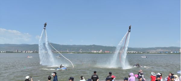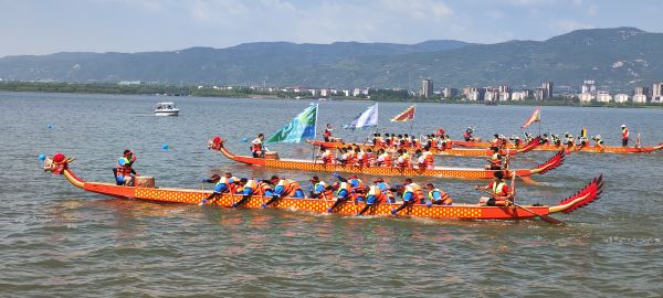 當(dāng)日上午,天氣晴朗,晉陽(yáng)湖碧波蕩漾,精彩的水上飛人表演吸引了許多游客觀看。岸上鼓聲陣陣,精彩的舞龍表演引來(lái)陣陣掌聲。伴隨著熱鬧的鑼鼓聲,4條龍舟“披紅點(diǎn)睛”禮成后下水巡湖,拉開了晉陽(yáng)湖首屆龍舟競(jìng)賽的序幕。據(jù)介紹,從6月23日開始,8組來(lái)自晉源各鎮(zhèn)(街)的龍舟代表隊(duì)和17組企業(yè)龍舟代表隊(duì)將在晉陽(yáng)湖公園東岸觀湖長(zhǎng)廊飛舟競(jìng)渡,展示歷史與現(xiàn)代交融、傳統(tǒng)與潮流并匯的城市氣息。