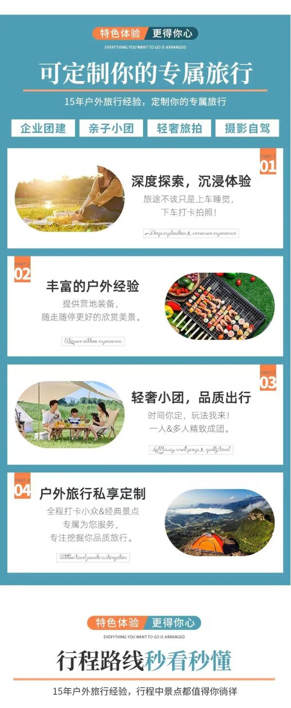 私人訂制:我們業(yè)務(wù)范圍囊括了全國各大城市,川西、西北、新疆、西藏,在路上永遠(yuǎn)有我們的身影。我們將為每一個有定制需求的你策劃出獨屬于自己的完美旅行。