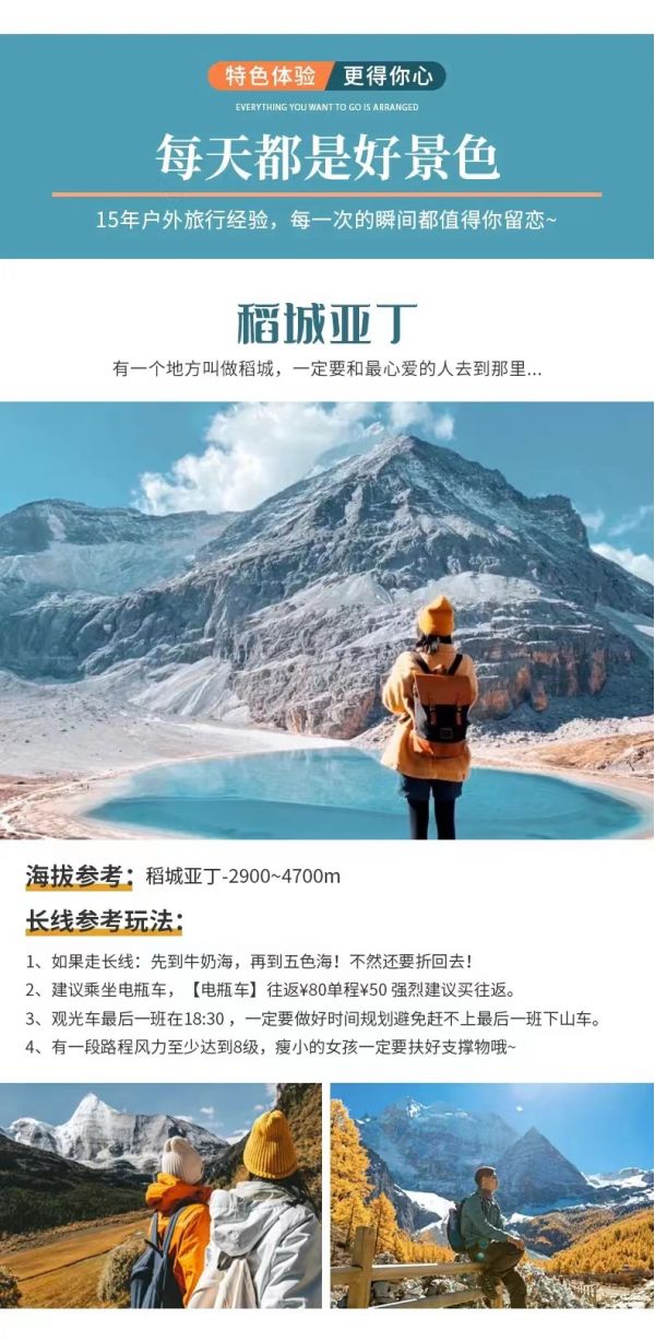 (3)亞丁景區(qū)馬匹數(shù)量有限,先到先得且無法提前預(yù)定,部分特殊人群不能騎馬,具體以景區(qū)為準(zhǔn)。