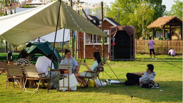 在城市近郊,“沉浸式”“慢節奏”的游玩方式受到青睞?!拔覀兲氐靥崆邦A訂了帳篷,帶家人來體驗清晨看日出、晚上數星星的奇妙之旅,孩子們特別喜歡這次露營體驗?!币瞬忻裰軉陶f。