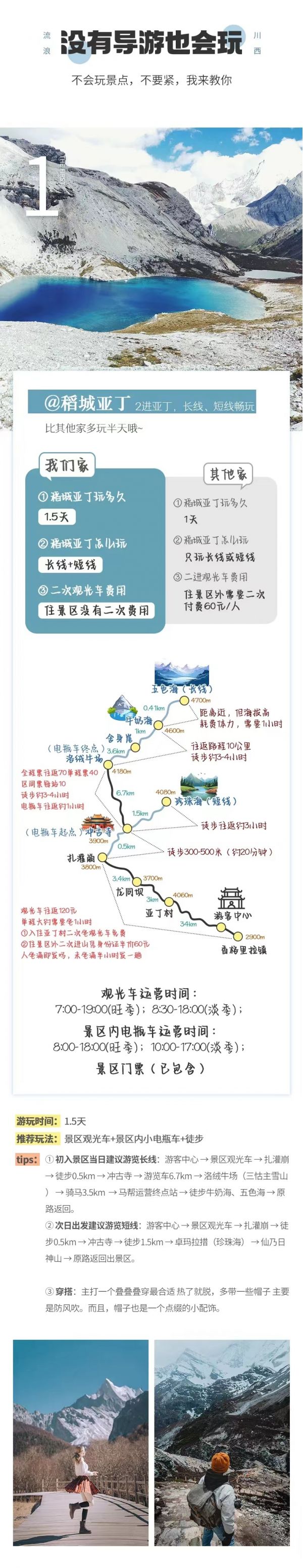 (5)請大家帶上昨日觀光車的票根,今天可繼續使用;亞丁觀光車末班車時間根據季節調整,請游客把握好游覽時間。