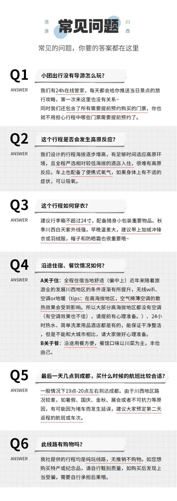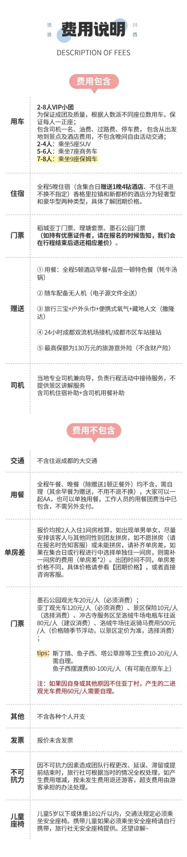 溫馨提示:第一天入住地點默認為新都橋鎮,若因交通狀況不允許或者旺季房源緊張,可能會調整至磨西古鎮入住初到高原,建議緩步行走,適應高原氣候,尊重少數民族風俗習慣。