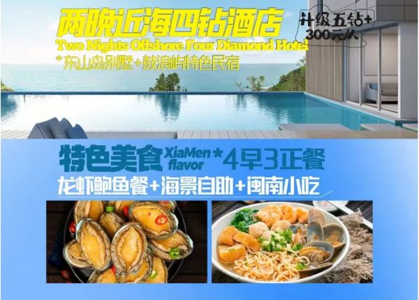 廈門市區(qū)2晚近海4鉆酒店+1晚東山島海邊別墅酒店+1晚鼓浪嶼精品民宿