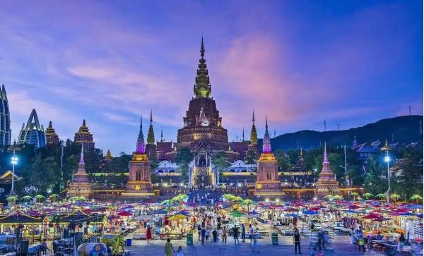 早餐:酒店早餐 中餐:孔雀宴 晚餐:自理早餐后,乘車抵達扶貧旅游示范村,參觀【傣族文化村落】(游覽時間約180分鐘),是西雙版納唯一集中展示傣族歷史、文化、宗教、體育、建筑、生活習俗、服飾、飲食、生產生活等為一體的民俗生態旅游精品景區。幢幢精巧別致的傣家竹樓和佛寺古塔掩映在綠樹叢中,透著一種自然、純樸、寧靜。這里江湖環抱、綠樹掩映,花果飄香,梵音繚繞,給人一種神秘,祥和的感受。在這里人與人、人與自然和諧相處 , 這是傣家人的勐巴拉納西,傣家人的人間天堂.大家可以體驗濃郁的傣家生活習俗, 觀賞典型的干欄式建筑、傳統的手工藝制作、傣族民間歌舞,以及接觸到神秘的小乘佛教文化。后前往游覽【勐泐大佛寺】(游覽時間約 120 分鐘,電瓶車自理單程 40 元/人、往返 60/人,建議乘坐單程)。國家AAAA級景區,也是傣王故宮遺址的重要部分,勐泐大佛寺是在古代傣王朝的皇家寺院"景飄佛寺"的原址上恢復重建的,"景飄佛寺"是傣族歷史上一位名叫撥龍的傣王為紀念病故的王妃南紗維扁而修建,從萬佛塔前廣場俯視景洪市景,旖旎的熱帶風光盡收眼底,景區以弘揚“南傳佛教文化”為中心,也可參與傣家潑水狂歡活動,與雨林精靈——孔雀親切互動,看孔雀齊飛盛景、明鏡臺-玻璃棧道 由景區山頂向景洪市區方向延伸,是跨度長45米,寬度24米,總面積約800m的懸空玻璃觀景平臺,取偈語“身是菩提樹,心如明鏡臺”,打造“明鏡菩提”的獨特意境。