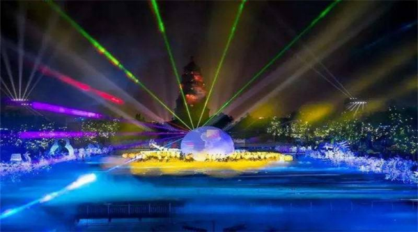 而在幾百公里之外的印象濟南·泉世界內(nèi),“光影·水秀”在夜幕降臨之時如約而至。與音樂翩翩起舞的投影、與燈光遙相呼應(yīng)的水花,變成了光與霧的海洋,點亮了濟南西城的秋夜。