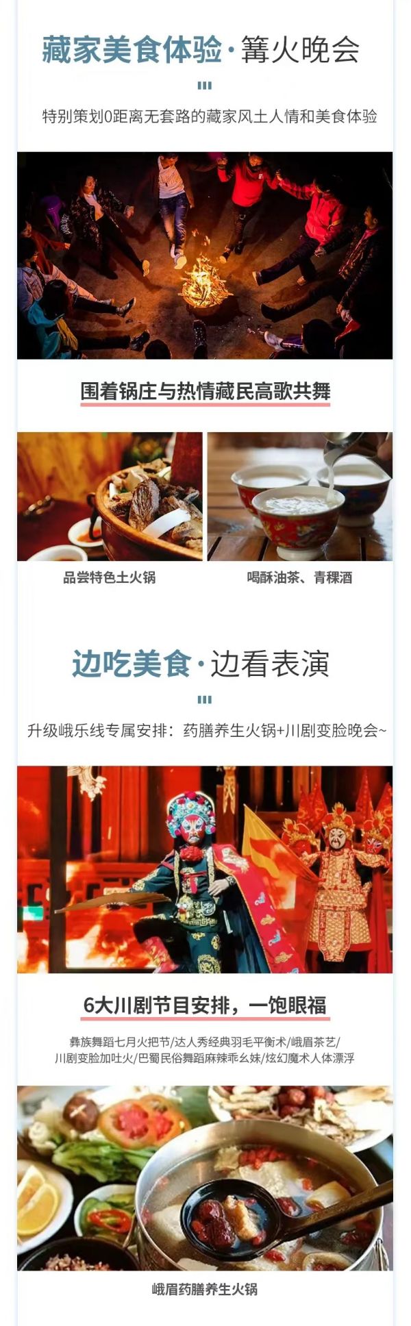 ? 用餐:含酒店早餐、午餐地道峨樂小吃宴、晚餐峨眉藥膳養生火鍋