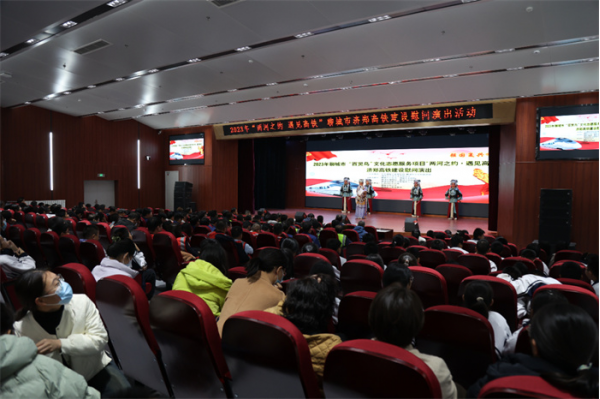 由中共聊城市委宣傳部、聊城市文化和旅游局、聊城市文學藝術(shù)界聯(lián)合會聯(lián)合主辦,聊城市文化館、聊城市京劇院、聊城市豫劇院、聊城市雜技團、聊城高鐵新區(qū)發(fā)展服務中心承辦,東昌府區(qū)文化館、聊城文軒中學、聊城東方教育集團協(xié)辦的2023年聊城市“百靈鳥”文化志愿服務項目“兩河之約 遇見高鐵”濟鄭高鐵建設慰問演出活動在聊城文軒中學西校區(qū)成功舉辦。