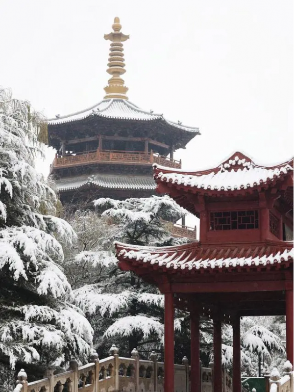 12月11日清晨,濟南迎來了一場大雪,位于山東濟南市章丘區的明水古城國際泉水旅游度假區,從游客服務中心到百脈泉區域均被白雪覆蓋,城內的雕墻鴛瓦、亭臺樓閣在白雪的映襯下,更顯得意蘊十足。正如老舍在《濟南的冬天》所說的,恍若是一張來自名手的小水墨畫