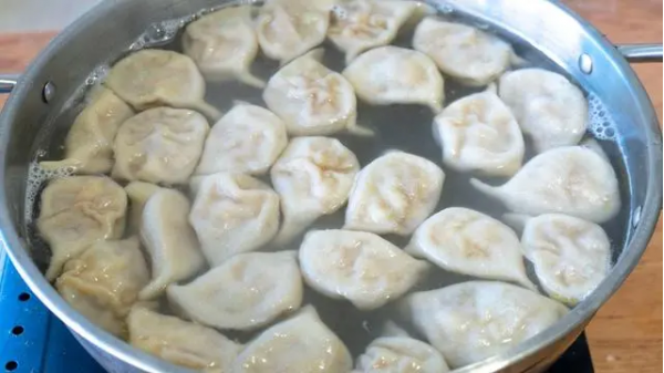 16、煮開后點三次水,直到餃子全部煮到飄起來,圓鼓鼓的就熟了。