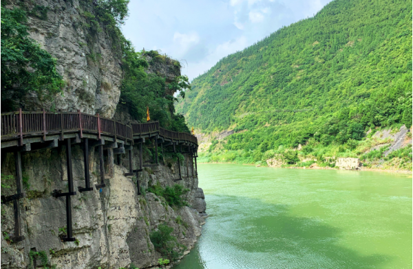 早餐后我們乘車(chē)前往明月峽約40分鐘,景區(qū)位于四川廣元嘉陵江西陵峽東段,因峽兩岸的山巖多呈銀白色,并和青峰、江水相輝映,使整個(gè)峽江好像鍍上了一層朦朧的月光,因此得名。峽中多奇峰怪石:有山勢(shì)嵯峨半插天的天柱峰,有宏麗幽深的黃顙洞,有茶圣陸羽稱(chēng)之為“天下第四泉”的蛤蟆碚,有騰空飛架的仙人橋,有裁云剪霧的青峰“三把刀”。