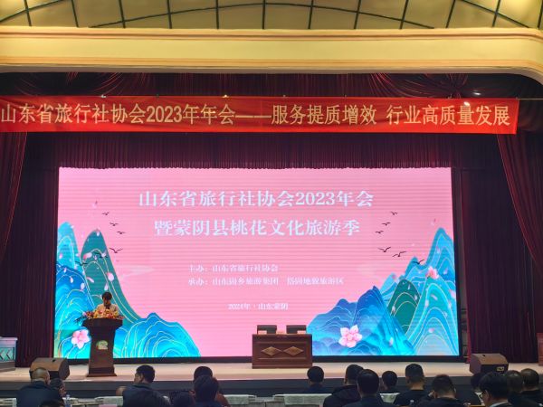 山東省旅行社協(xié)會(huì)2023年會(huì)暨蒙陰縣桃花文化旅游季蒙陰縣委副書記、縣長苗運(yùn)全致歡迎辭,詳細(xì)介紹了蒙陰縣整體情況、文旅資源和未來發(fā)展。他表示,山東省旅行社協(xié)會(huì)年會(huì)在蒙陰召開,必將有力擴(kuò)大蒙陰旅游的知名度,提升全縣旅游業(yè)的服務(wù)水平,蒙陰縣將以本次會(huì)議為契機(jī),持續(xù)深化“文旅融合、農(nóng)旅融合、紅綠融合”,進(jìn)一步健全研學(xué)旅游體系,塑造區(qū)域民宿品牌,全力爭創(chuàng)全國全域旅游示范縣,為旅行社提供更好的資源和服務(wù)。